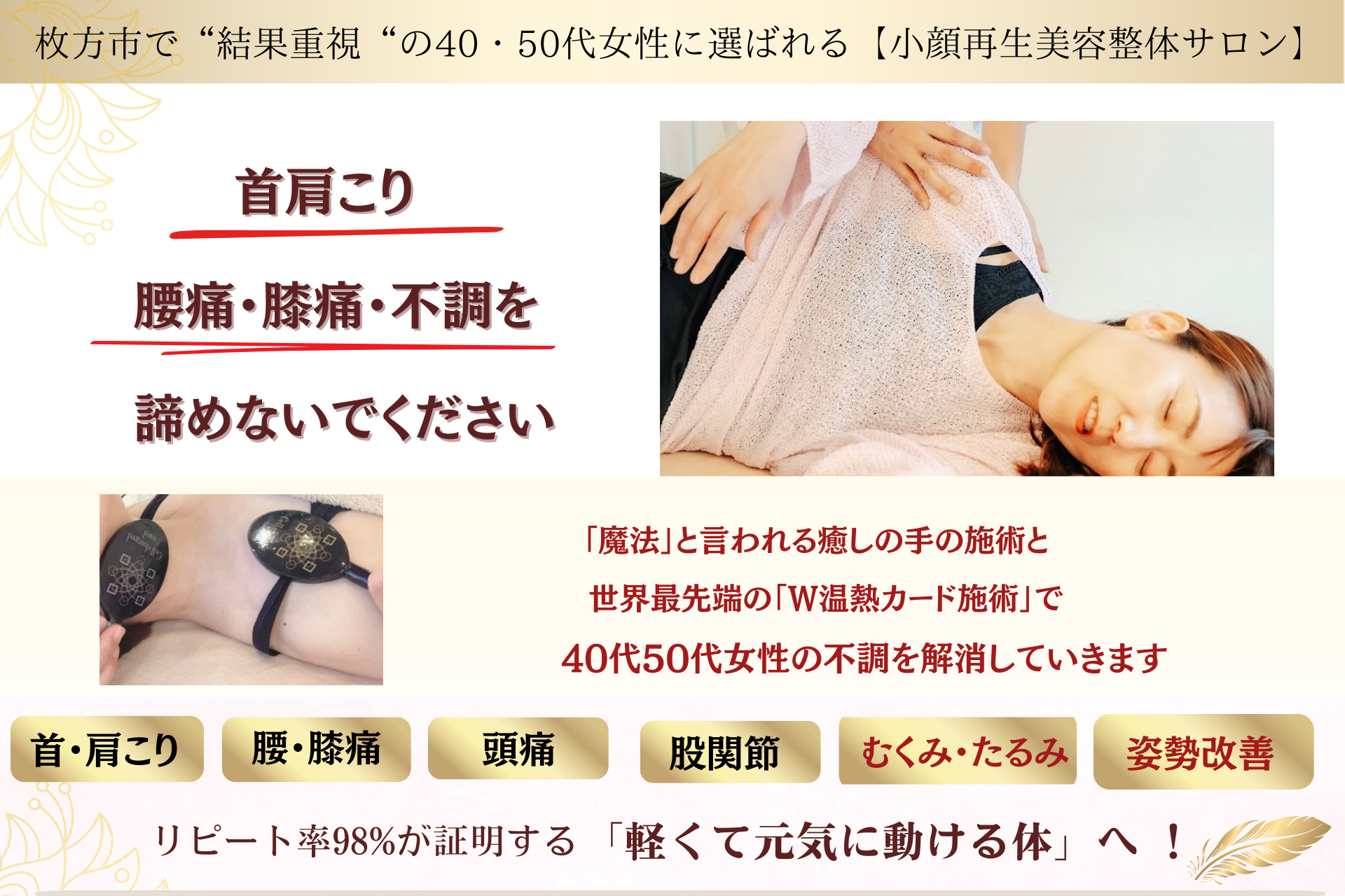 今まで鍼灸や整体、他のサロンにも行ってましたが、1回の施術でここまで変わったのは初めてです。
