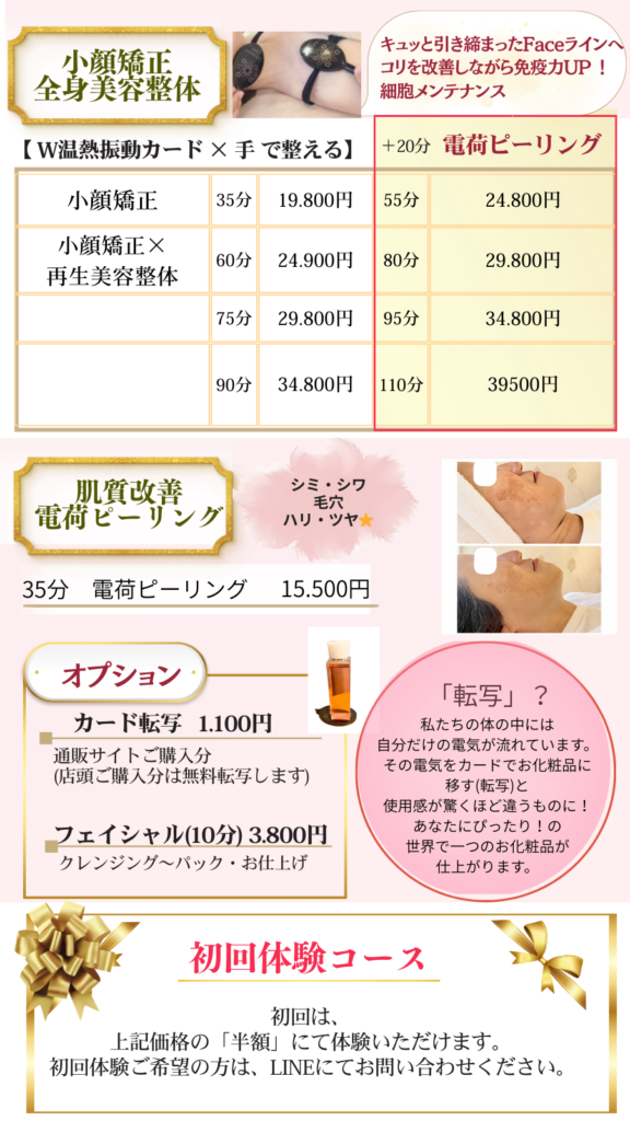▶︎「小顔矯正+再生美容整体」の施術時間は、お身体のお悩み状態によって変わります。カウンセリング時にお悩みをしっかりお聞かせいただき、最適な提案をさせていただきます。